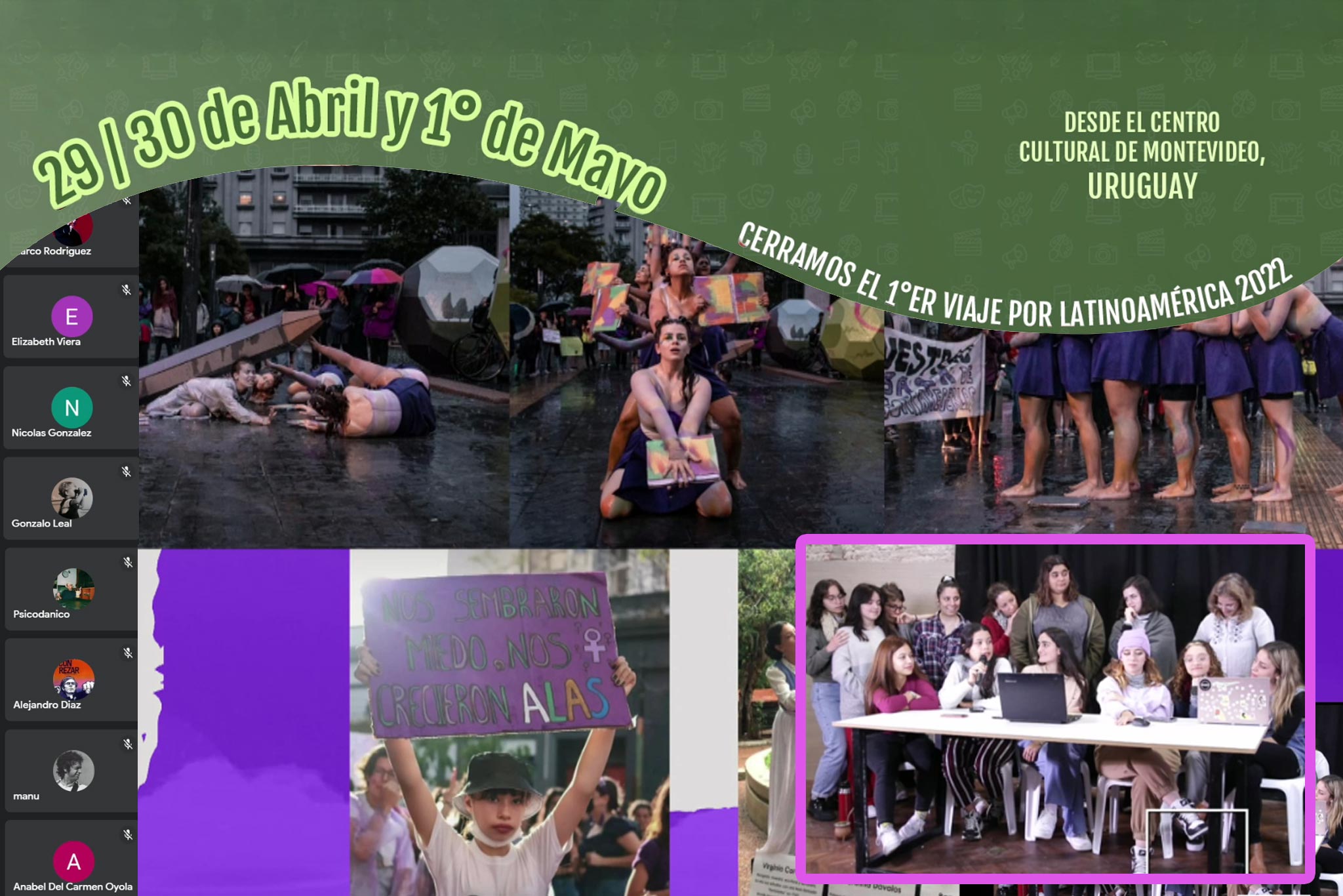 La pandemia, interrumpió una gira internacional que estábamos por presentar en marzo del 2020 en Argentina y Uruguay. Junto a compañeros y compañeras de diferentes territorios quedamos en la ciudad de Montevideo a causa de las restricciones sanitarias. Las actividades no frenaron y fueron organizados talleres de historia política, luchas sociales, arte, charlas, cine-debate y presentaciones, que incluso se transmitieron online sirviendo de apoyo y de acompañamiento para compañeras y compañeros que enfrentaban medidas sanitarias mucho más estrictas en Argentina, Paraguay e Italia.
